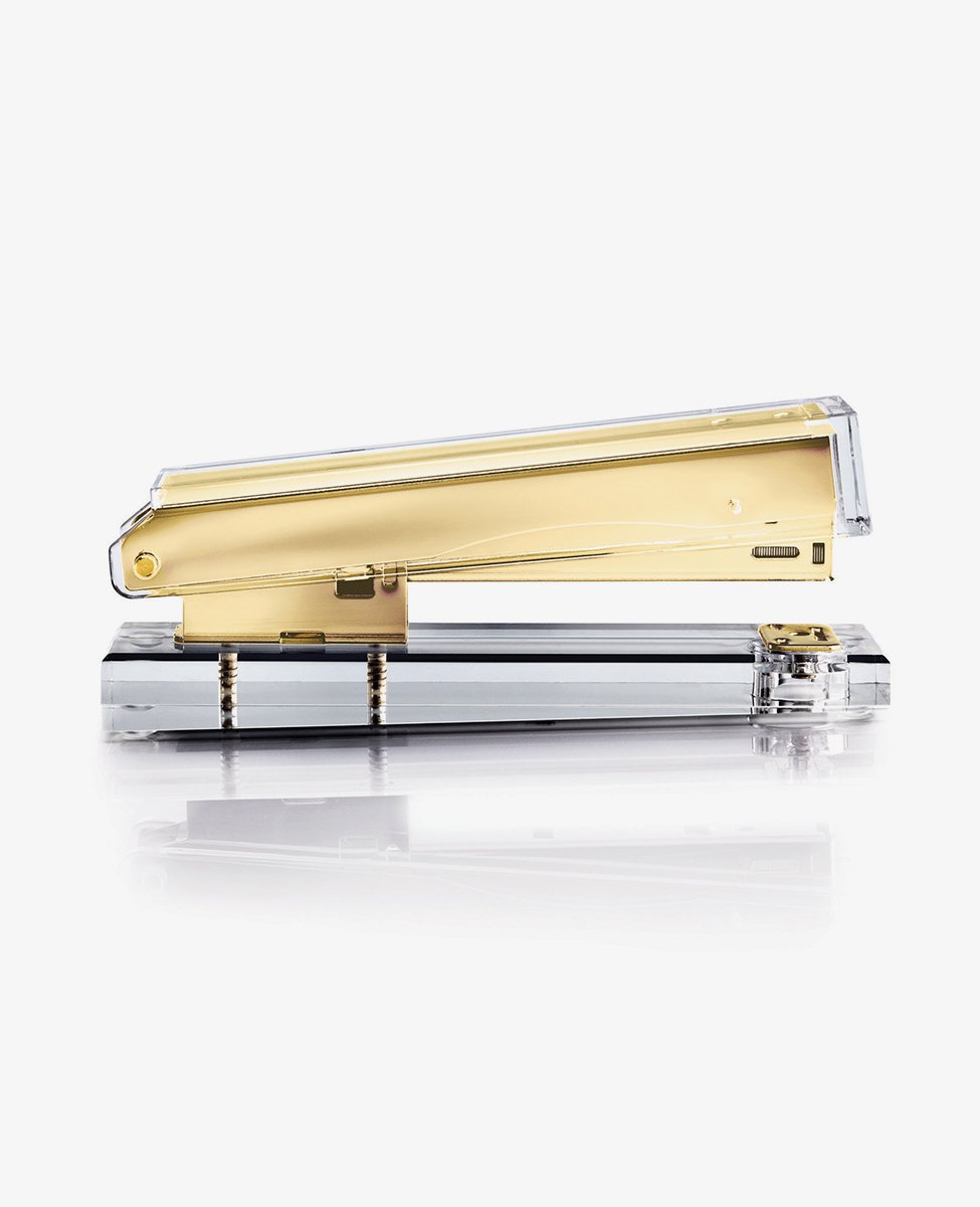 Proporcione a su espacio de trabajo un cambio de imagen. Tener algunos accesorios de oro es la manera perfecta de a animar su escritorio. Y esta hermosa grapadora en oro será el complemento perfecto para su escritorio. En un diseño elegante y construcción de borde pulido, es único, elegante y, por supuesto, funcional. Haga feliz su escritorio añadiendo un poco de brillo. Grapas no incluidas.